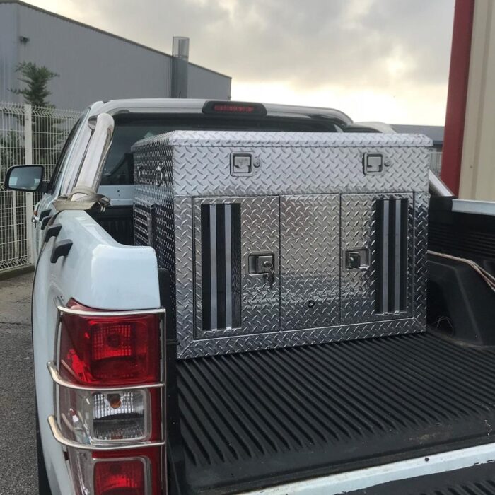 Le Coffre transport de 2 chiens 1000 x 930 x 760 mm avec réservoir est un produit de qualité supérieure, idéal pour les propriétaires de chiens ou les professionnels. Fabriqué en aluminium, il offre une grande durabilité et une performance exceptionnelle. Ce modèle polyvalent convient à la plupart des pick-up et est équipé d’un bac à eau avec robinet. Les clients lui attribuent une note parfaite, soulignant sa qualité, sa praticité et sa robustesse. Un choix parfait pour le transport et la sécurité de vos animaux de compagnie.